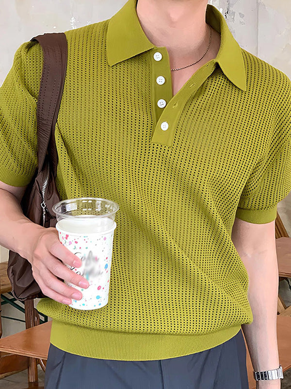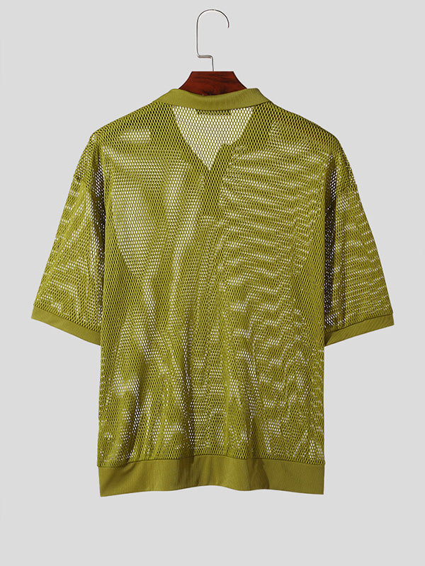 Mens Solid Mesh See Through Golf Shirt SKUK61127