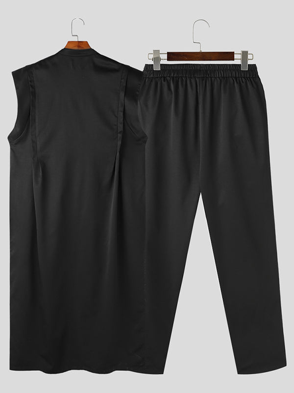Mens Solid Muslim Robe Two Pieces Outfits SKUK25955